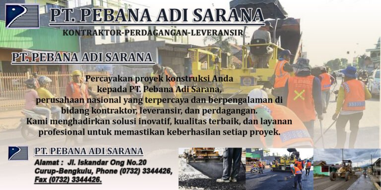 Percayakan proyek konstruksi Anda kepada PT. Pebana Adi Sarana, perusahaan nasional yang terpercaya dan berpengalaman di bidang kontraktor, leveransir, dan perdagangan. Kami menghadirkan solusi inovatif, kualitas terbaik, dan layanan profesional untuk memastikan keberhasilan setiap proyek.